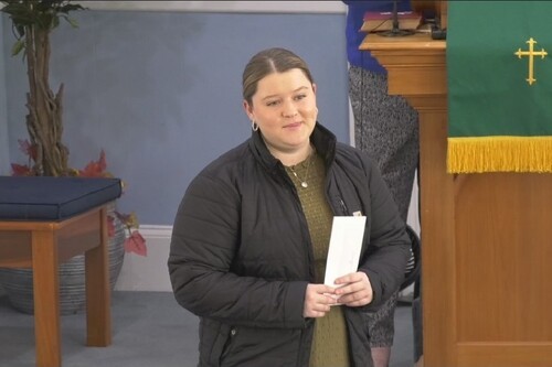 Taylor Stoddard receives check from fund